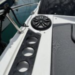 We easily return to the subject of this article, namely the water test with the new R8-S model, an abbreviation where the “R” stands for Racing. We therefore have a model that emphasizes sportiness, from the bowrider category, 7.5m long and powered by a 300HP Mercury outboard engine.